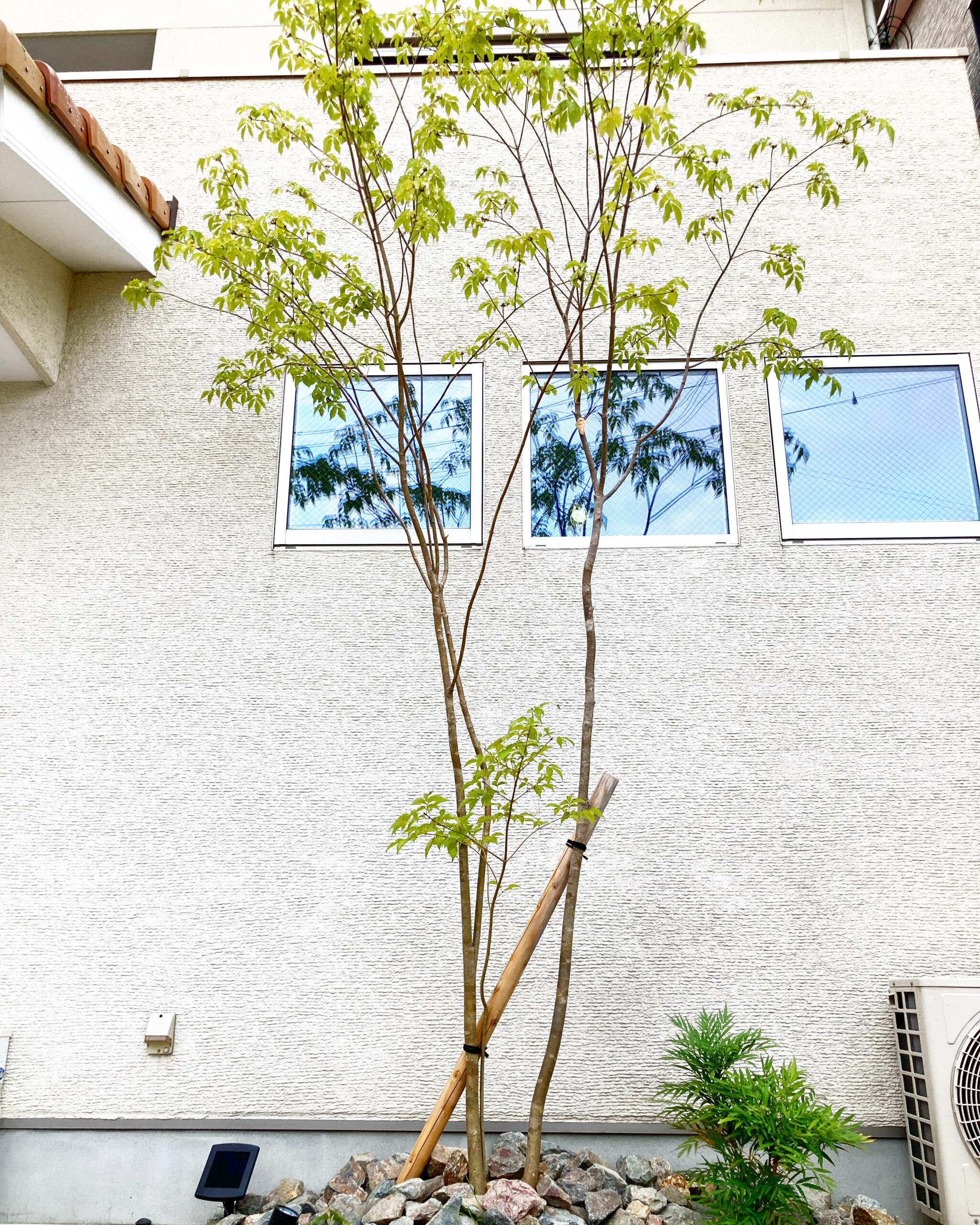 砂利も大小とメリハリをつけてアオダモがとってもオシャレな雰囲気を出しています♪